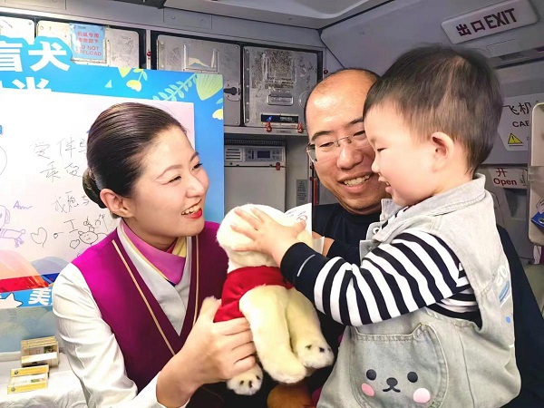 On Tuesday, China Southern Airlines organized a guide-dog-themed flight from Dalian, Liaoning province, to Guangzhou, Guangdong province.